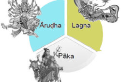 Ārūḍha in its most simple definition means mounted, ascended or bestridden (as a horse). It is the sign, the animal represented by the sign, which is mounted. For example if the ārūḍha is Sagittarius then the image is like ‘a person riding a horse’ whereas if it is Leo, it is of a ‘person riding a lion’! The word mounted implies such an image.